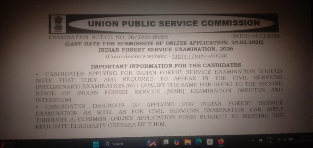 યુનિયન પબ્લિક સર્વિસ કમિશન (UPSC) દ્વારા ઇન્ડિયન ફોરેસ્ટ સર્વિસ (IFS) ભરતી 2026 માટે